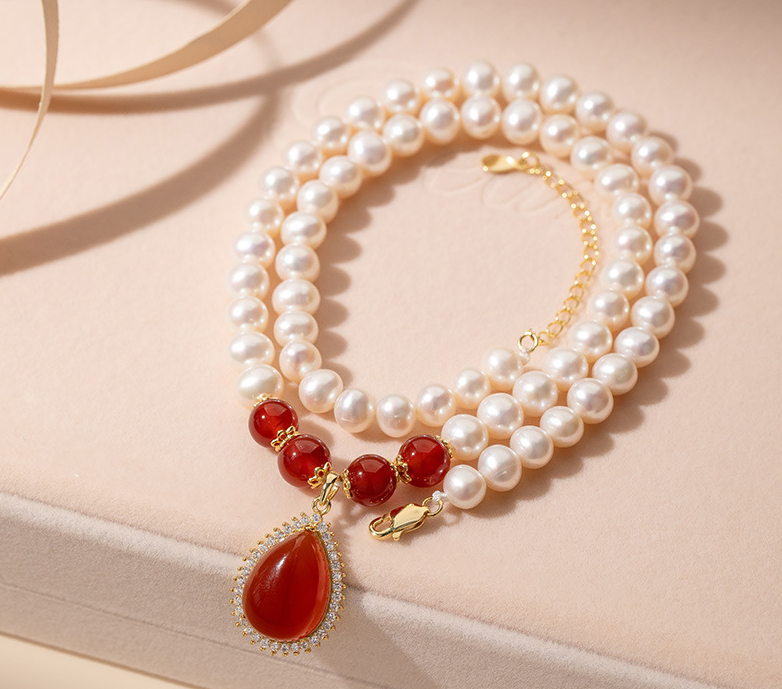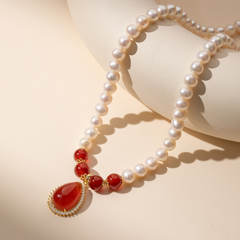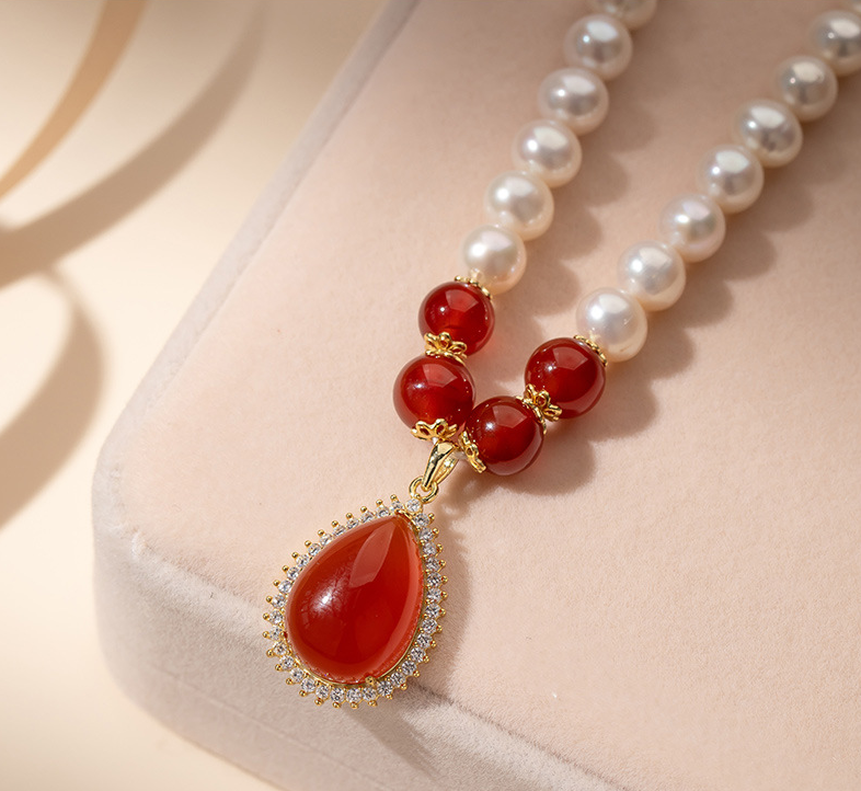 Color / GemstoneRed Carnelian & Pearl